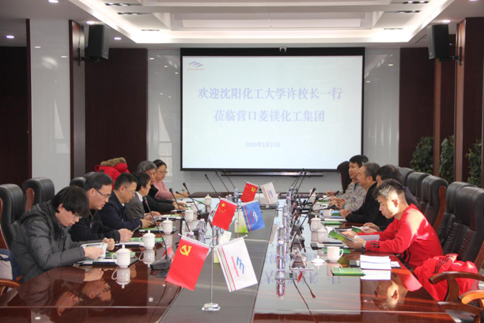 2020年1月17日,沈陽化工大學(xué)校長許光文、學(xué)科發(fā)展規(guī)劃處處長孫亞光、科技園副主任何偉(主持工作)、劉云義教授、李雪教授一行,在營口市科技局局長卜蘭杰、副局長鄒本福等陪同下到營口菱鎂化工集團進行交流訪問。
