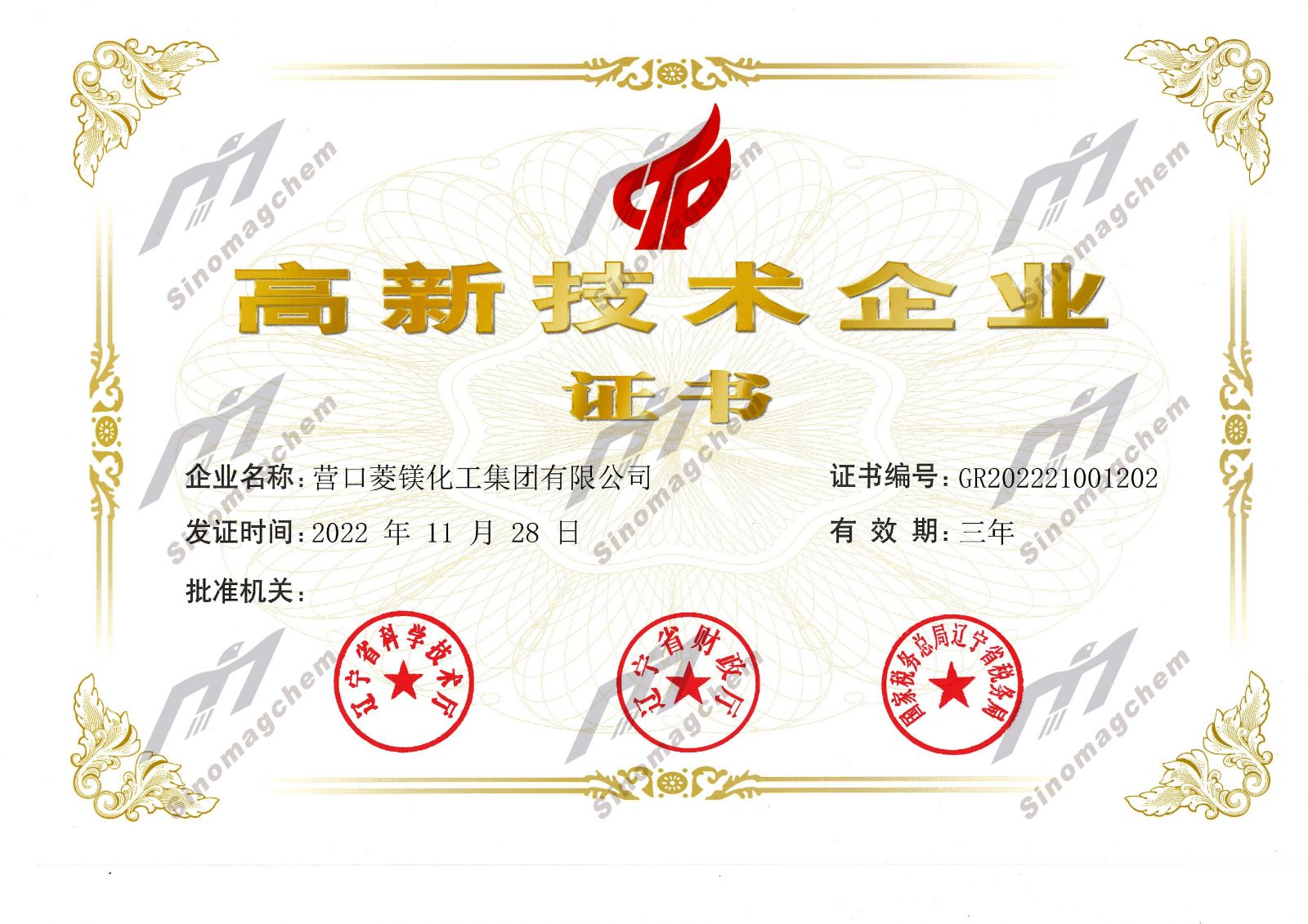 營(yíng)口菱鎂化工集團(tuán)順利通過(guò)高新技術(shù)企業(yè)再認(rèn)定