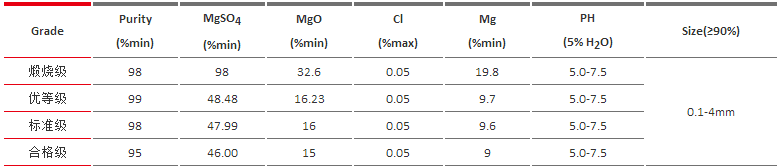 ● 工業級產品 七水硫酸鎂是非常重要的無機化工原料,用途廣泛,除了用于醫藥、食品、輕工業、化學工業、制革工業、印染工業,還可用作水泥助凝劑、阻燃劑、炸藥、火柴、瓷器、玻璃、顏料、ABS樹脂的制造,同時在造紙工業、水處理、工業領域也有廣泛應用。