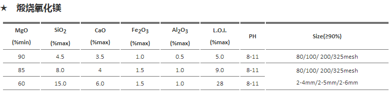 ● 工業級產品 氧化鎂類產品廣泛應用于化工、造紙、冶金、環保等多種行業。我集團生產的氧化鎂類產品具有質量穩定、活性好、純度高、種類齊全的優點。