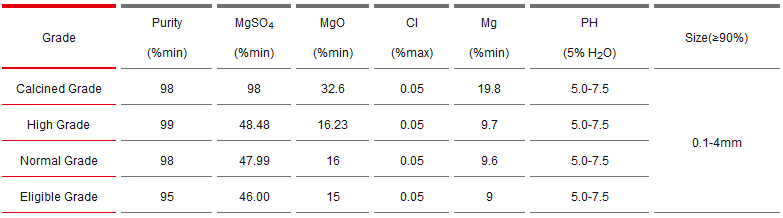 Magnesium Sulphate Heptahydrate is an important inorganic raw material which can be widely used in medicine and food, light industry, chemical industry, leather and printing. It can also be applied as concretion-aid agent, burning inhibitor, the blasting explosive, the matches, pottery and glassware, pigment, ABS resin manufacture and etc. In addition, these chemical products are also used in the paper manufacturing industry , water treatment and industry field.